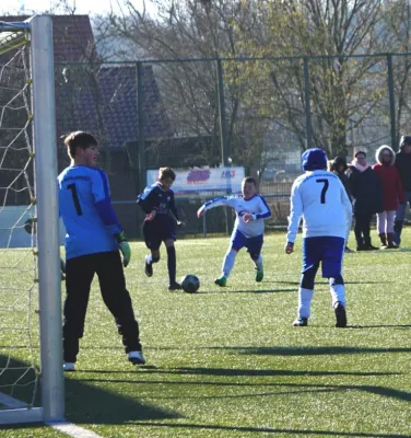 Nach dem Vereinsturnier wollten wir am Sonntag ein weiteres Testspiel in Farnstädt auf Kunstrasen gegen das dortige Blau Weiß bestreiten. Unser Kader wird immer kleiner (fehlten Jonas O., Jonas R. und Jerre), dennoch wollten wir nochmal guten Fußball zeigen, um uns somit optimal auf die Rückrunde einzurollen. Lucas Menzel aus unserer E-Jugend wurde ins kalte Wasser geworfen und er machte dies richtig gut!